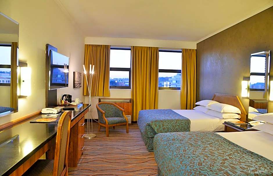 The twin room offers air conditioning, a tea and coffee maker, as well as a private bathroom featuring a bath and a shower. The twin room provides a TV, a safe deposit box, a carpeted floor and heating. The unit offers 2 beds.